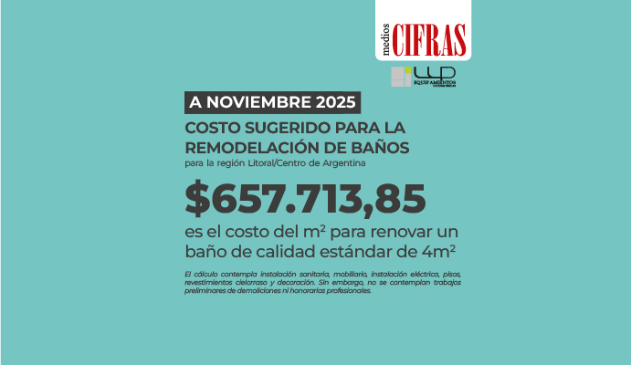 Baño estándar: el m² llegó a $657.713,85 en diciembre