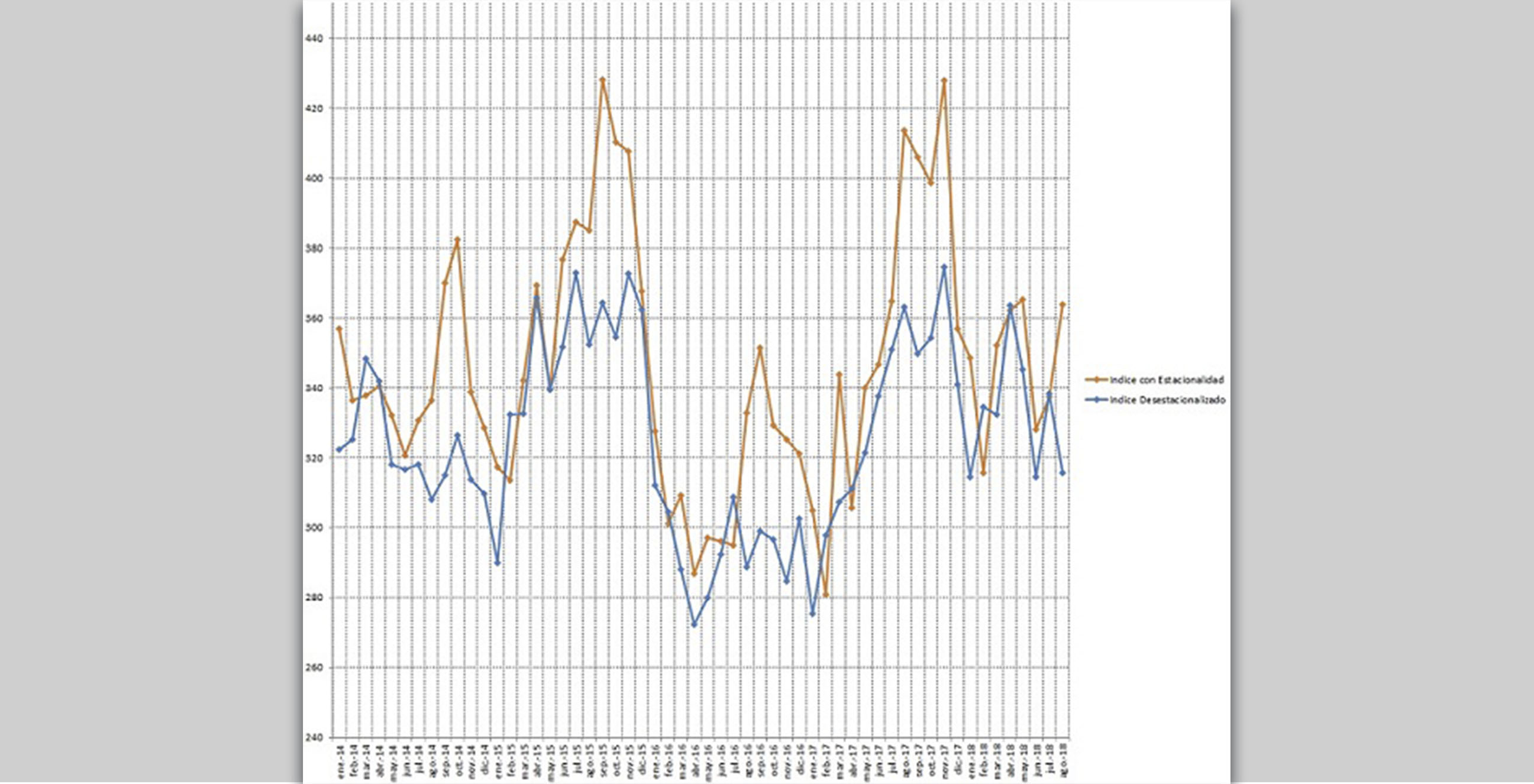 El Índice Construya registró, en agosto de 2018, una caída del 6,70%