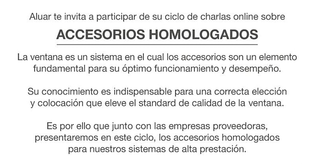 En este ciclo nos acompañarán las empresas proveedoras presentando los accesorios para nuestros sistemas y sus características.