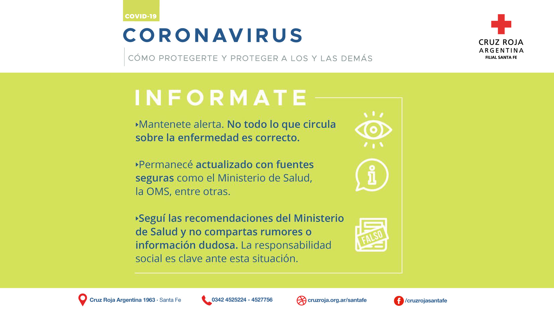 Ante las dimensiones que está tomando el contagio del Covid-19, desde la Cruz roja Argentina se han difundido una serie de recomendaciones para protegerse del coronavirus, entre ellas lavarse las manos, evitar lugares públicos con gran afluencia o no realizar viajes si se tiene tos o fiebre.