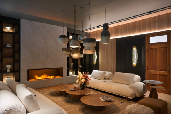 Un tema que atravesó varios espacios de la muestra fue la búsqueda de ambientes que transmitieran calma, invitando al relax y al disfrute. El Espacio nº 5 “Refugio”, de CZ Estudio, propuso un lugar de encuentro para compartir y disfrutar de la lectura. Para ello, eligieron los diseños Nogal del Pacífico natural y Negro con textura madera para revestir las paredes y la biblioteca que enmarcó la pared del hogar.