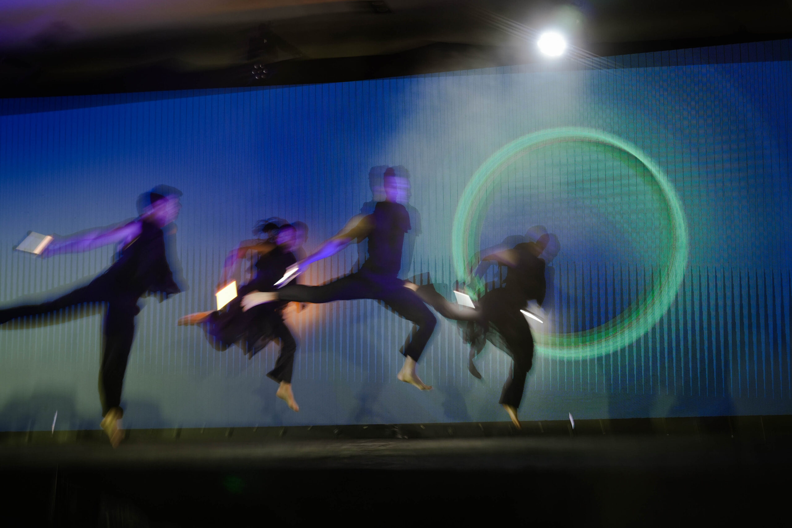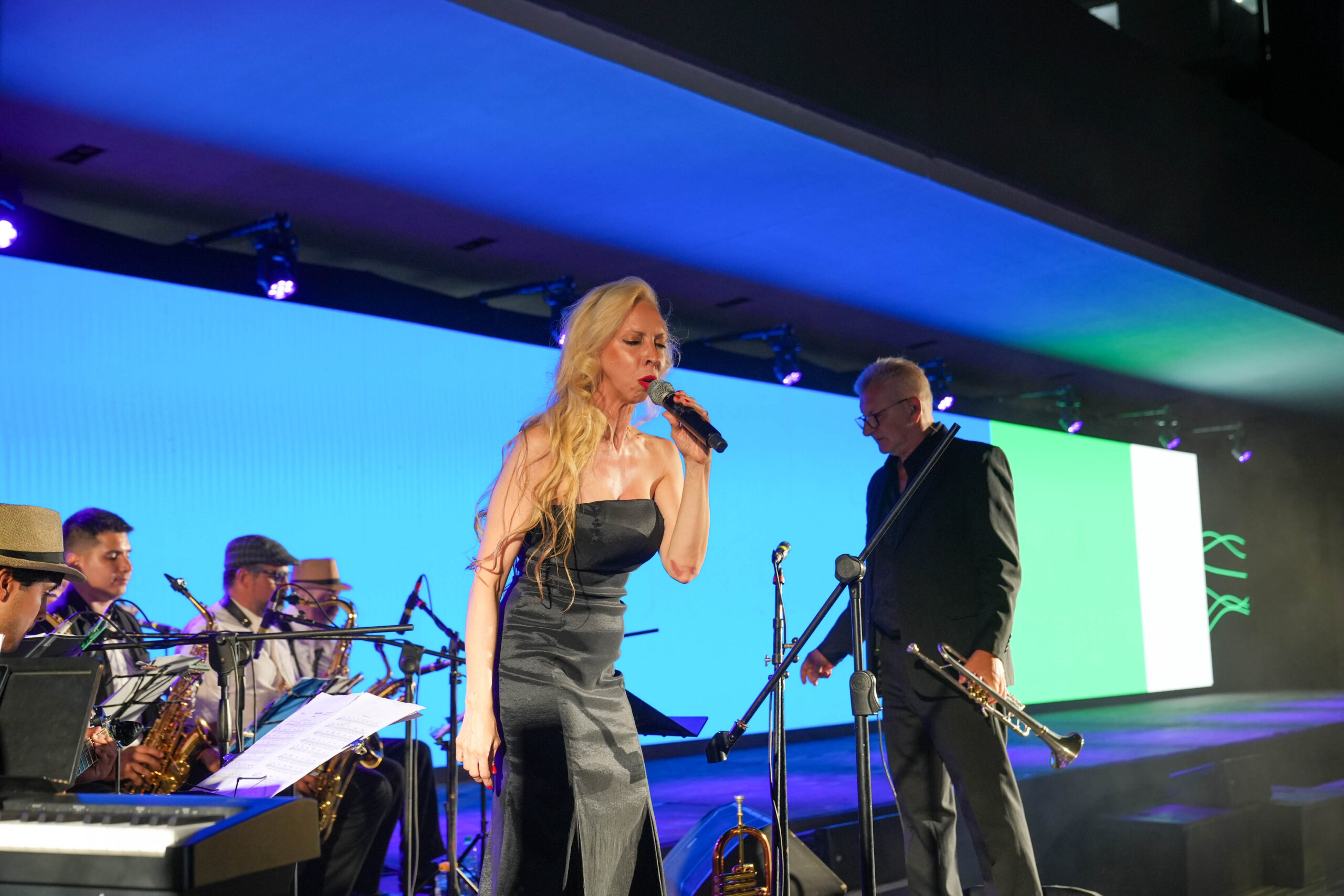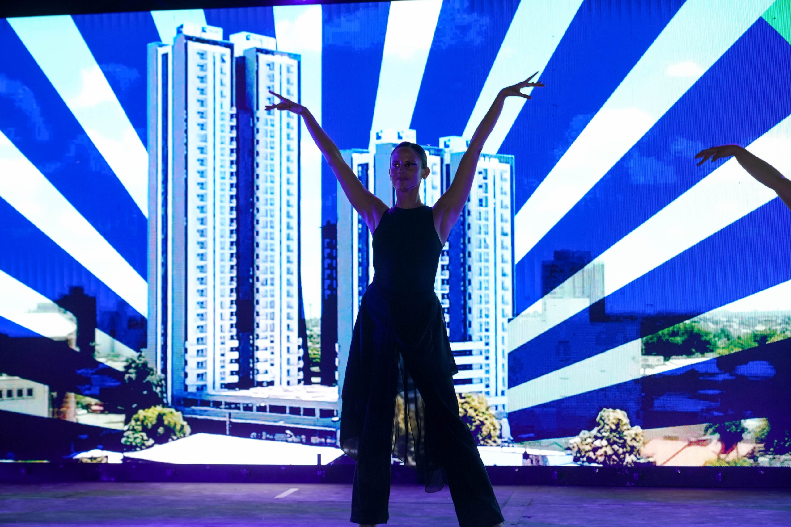 La propuesta se desarrolló al pie de las torres del complejo y ofreció una experiencia inmersiva que combinó pantallas de gran formato, intervenciones actorales, danza contemporánea y música en vivo, en un recorrido visual y sensorial por la historia y el futuro del lugar.
